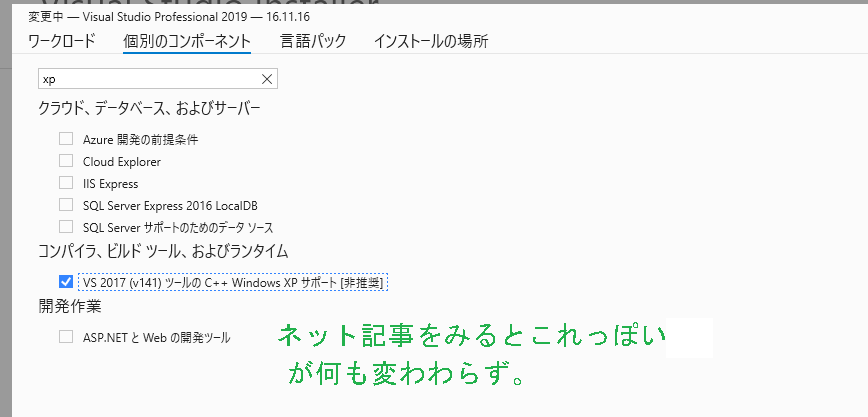 VS2017のパッケージ追加できる情報があり、試しましたが特に変化なく。