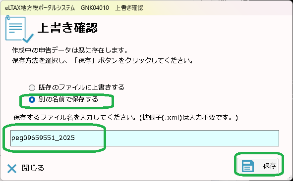 再び提出先選択画面で税務署を選択、上書き確認ダイアログが表示されるので、一応 xmlファイル名を変更しておきます。申請データ作成結果一覧(地方税)画面から次へを選択。ここでようやく「第六号様式」の申請画面が開きます。ここまでの操作、多すぎですね。どういう設計ポリシなのでしょうか?