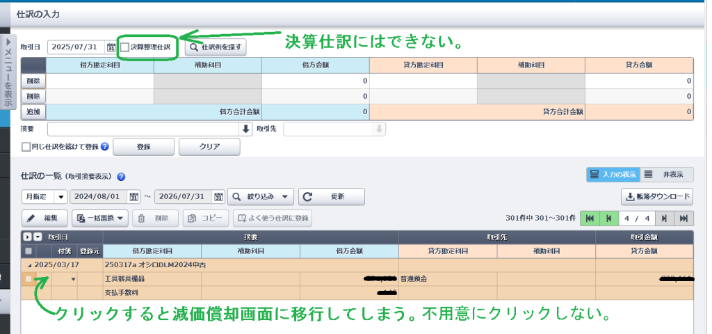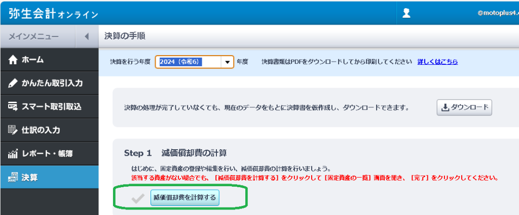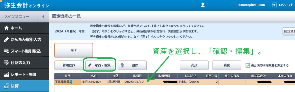 会計ソフト「弥生オンライン」で、減価償却の処置時の覚書です。