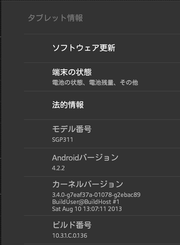 SGP311:Xperia Tablet Z Wi-Fi 16GB版をAndroid 13相当にSetupする