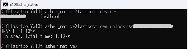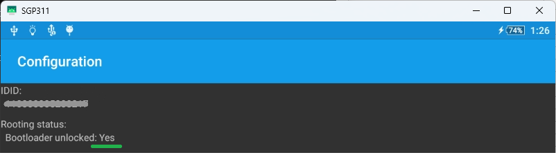 これまでどおり unlock して再起動し、Unlocked: Yes を確認します。
