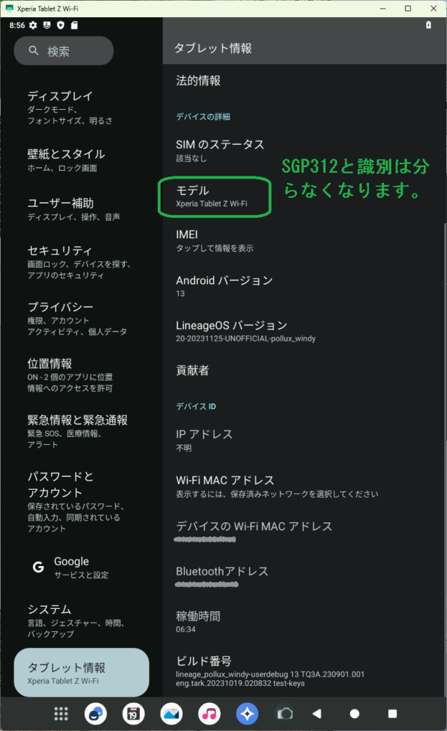 以前 Xperia Tablet Z Wi-Fi 32bit版:SGP312 を Android13 相当にsetupしました。本モデルには、16GB版の SGP311 があります。今回はこちらの方をセットアップしました。32GB版SGP312との違いを報告します。