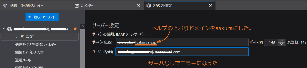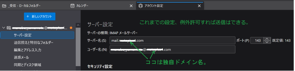 Thunderbird の自動設定は使用せず手動設定した方がいいみたいですね。