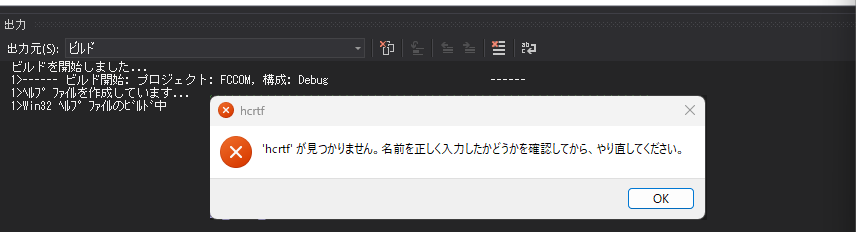 HCRTF.exe がカレントフォルダな無いためのようです。